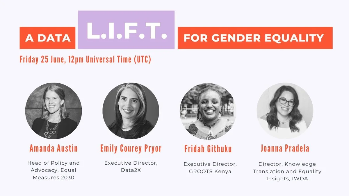 A Data L.I.F.T. For Gender Equality Friday, June 25, 2021 8:00 AM 9:05 AM Google Calendar ICS No country has achieved gender equality. We need robust #data about the lives & women and girls to drive change. Join Data2x discuss why #GenderData is vital for #GenderEquality & the steps we need to take ahead of #GenerationEquality REGISTER.