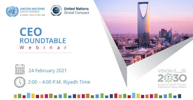 CEO Roundtable Webinar Wednesday, February 24, 2021 6:00 AM 8:00 AM Google Calendar ICS Join the 2021 CEO Roundtable on 24 Feb, where the UN Global Compact, together with UN Saudi Arabia, will explore innovative business solutions to accelerate sustainable development. Learn more and register.