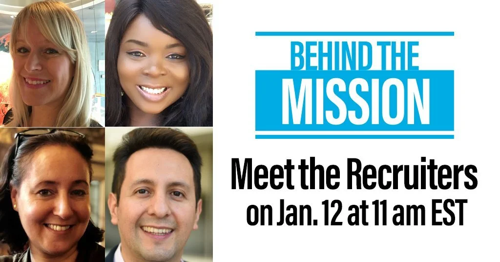 Back to All Events Behind The Mission Tuesday, January 12, 2021 11:00 AM 12:15 PM Google Calendar ICS Do you want to change the world? Talk to World Bank & IFC recruiters on January 12 at 11am EST on joining our mission to end poverty. Follow #BehindtheMissionWBG on @LinkedIn to post questions.